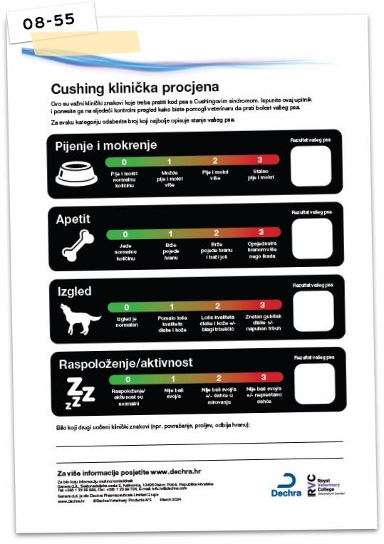 Kako biste mogli što bolje pratiti napredak kod svog psa, letak s Cushing kliničkom procjenom možete preuzeti ovdje