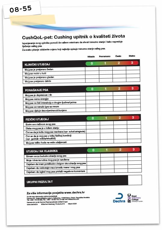 Liječenje Cushingovog sindroma kod vašeg psa poboljšava njegovu kvalitetu života, a time i kvalitetu vašeg. Upitnik „CushQoL-pet” mjeri kvalitetu vašeg života i života vašeg psa i može pomoći identificirati područja mogućeg poboljšanja.